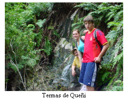En una hora y un poco más llegamos a las famosas Termas de Queñi, un arroyito con agua caliente y el típico barro mal oliente de todas las fuentes termales. Seguimos el arroyo unos metros hacia arriba hasta llegar al punto donde el agua brota de la roca. En el descenso por la picada (bastante pendiente y resbalosa) sufrí el ataque de las renombradas chaquetas amarillas, resultando con dos buenos pinchazos.
