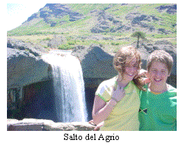 En una hora y un poco más llegamos a las famosas Termas de Queñi, un arroyito con agua caliente y el típico barro mal oliente de todas las fuentes termales. Seguimos el arroyo unos metros hacia arriba hasta llegar al punto donde el agua brota de la roca. En el descenso por la picada (bastante pendiente y resbalosa) sufrí el ataque de las renombradas chaquetas amarillas, resultando con dos buenos pinchazos.